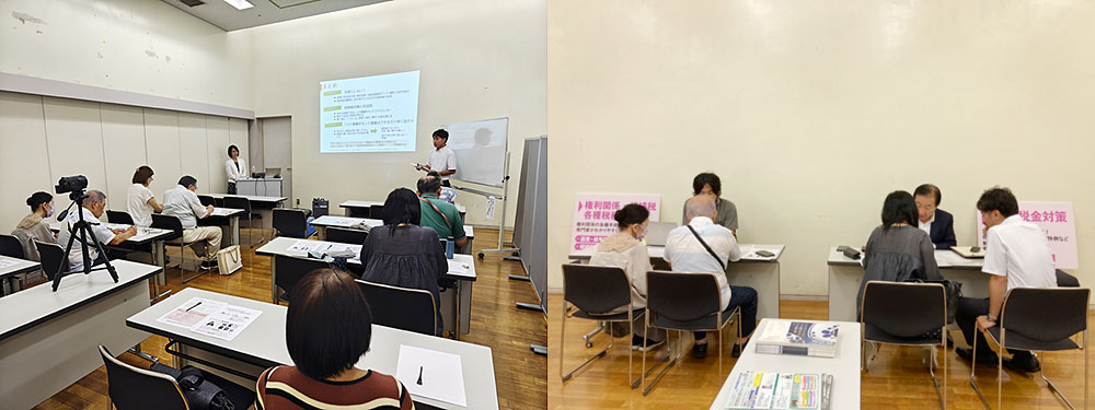 9月13日(土) 10:00~15:00 大相談会 | 専門家と空き家に関する 大相談会実施 随時受付/予約優先 時間:10:00~15:00 定員:各15組様 A 空き家の維持管理 毎月の維持管理が大変!空き家の見守りサービス相談 B 空き家の売却 今が最後の売り時!1円でも高く売る売却相談 C 空き家の利活用(住む・貸す) 自宅で活用・賃貸で活用 賢く活用するリフォーム・建替え相談 D 相続・税務関係の調整 相続税・各種税務相談 E 生前整理と片付け あわてない実家の片付けと生前整理、遺品整理の相談 F 登記・権利関係 空き家の権利関係も一発解消!相続・遺言・成年後見・家族信託相談 G 老人ホーム・施設紹介 介護施設・老人ホームの選び方 H 墓じまい・改葬 お墓・納骨堂の選び方、墓じまいの手続き・費用相談 経験豊富な不動産 ・ 住宅コンサルタント、 税理士、 司法書士、 ファイナンシャルプランナー等が中立的にご相談に応じます。 |